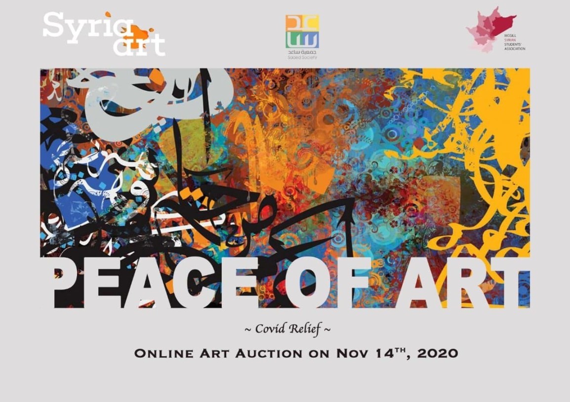 McGill University Syrian Students’ Association (SSA), a non-profit, secular student club directed towards helping the McGill and Montreal Syrian community, and Syrians everywhere around the world is organizing an art auction to help raise money for Syrians in Syria who have had to deal with the added hardship of COVID-19 called “Peace of Art for COVID”. The money raised would allow us to buy highly demanded medical equipment, such as oxygen tanks and electric organizers through an organization named “Saaed Society”. They are currently working on the grounds of Syrian provinces providing medical care and help for those impacted by the virus as well as preparing for the second wave that should be approaching soon.