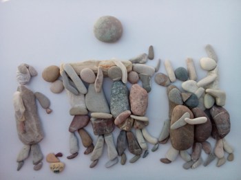 His artistic goal is purely human, his favorite subjects being Syrian people, poverty, precariousness, injustice, war and destruction, all this told with his peeble-stones, as visual tales filled with heart-touching emotions. Just like the images of his homeland and his people, his compositions of peeble-stones shape a universe in color that testifies to human life, and his work seems to be inscribed in a space out of time, a space of eternity, such as an ultimate cry of hope.